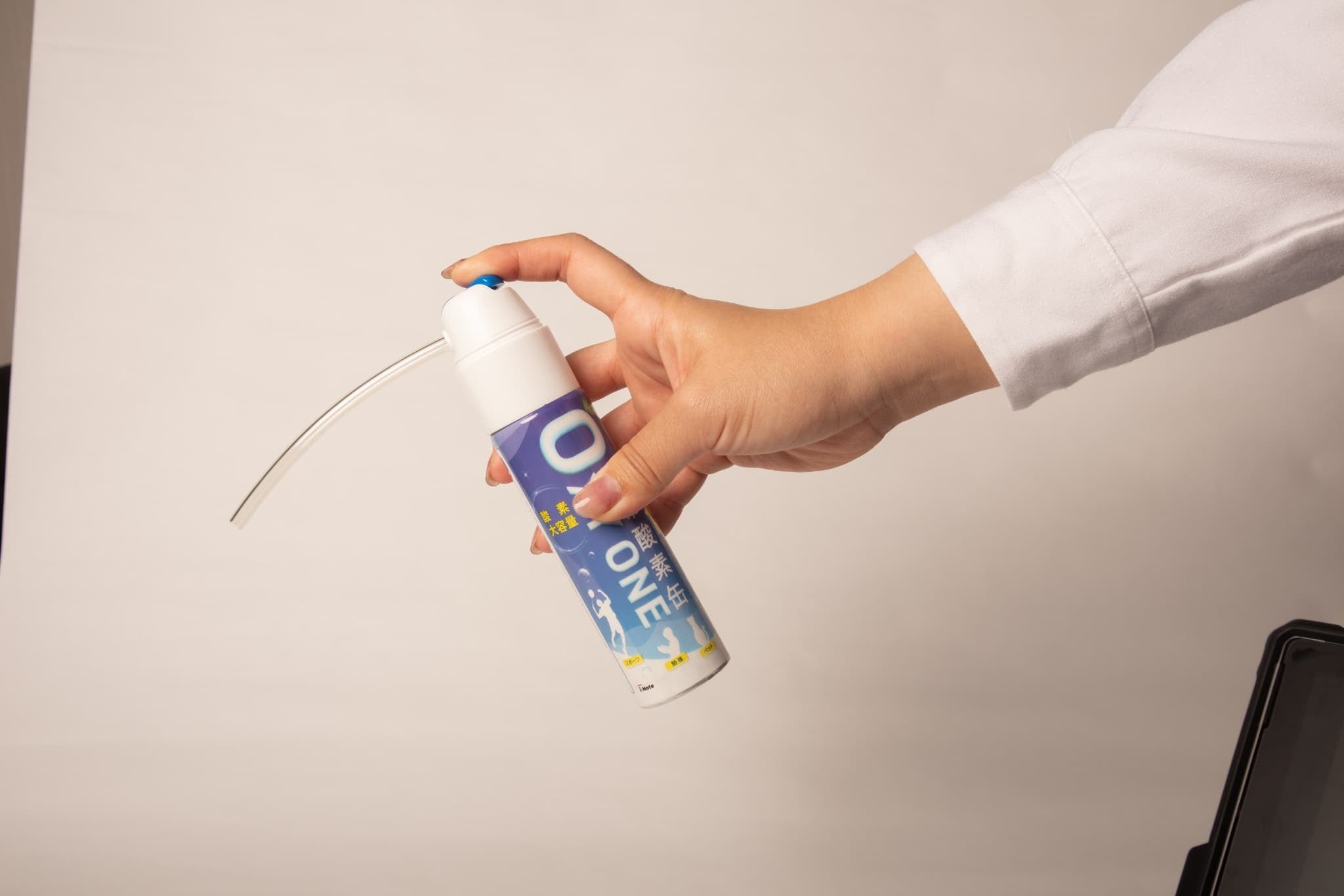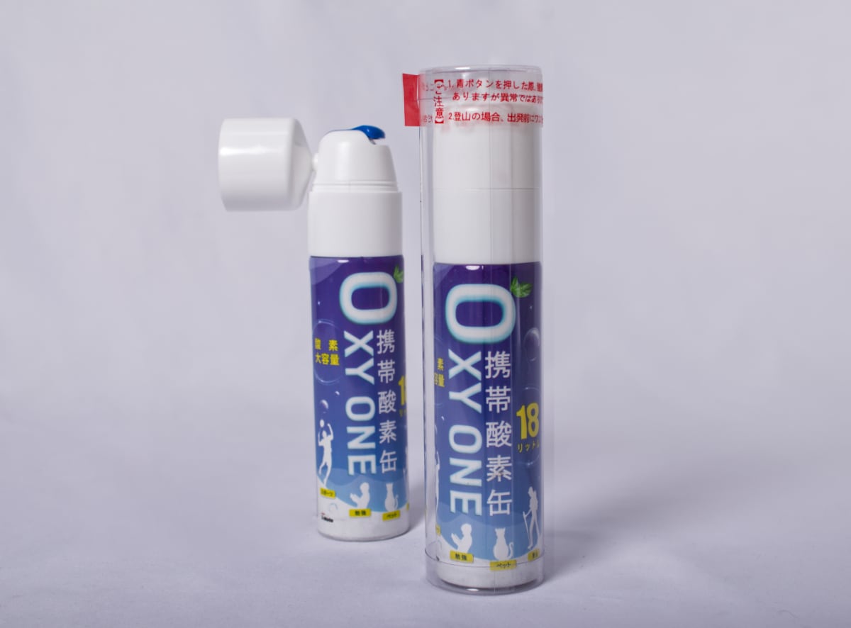 動物病院や移動中に体調が不安定になったとき、手軽に使用できる酸素缶。